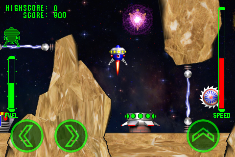 در هنگام پرواز ، نیروی گرانشی سیاره روی کشتی عمل می کند ، هنگام فرود باید مراقب باشید و از حداکثر سرعت نزول مجاز تجاوز نکنید. در یک قطره معتبر ، نشانگر نشانگر سرعت سبز است. در هر برخورد با موانع یا در هنگام فرود خشن ، کشتی شما آسیب خواهد دید تا اینکه کاملاً نابود شود.